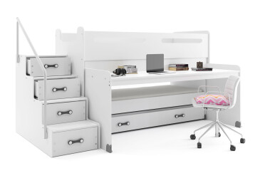 - super-cena, 80x200 cm, 3 místa pro spaní, dřevo, lakovaná, bílá, s úložným prostorem, s roštem, MDF.