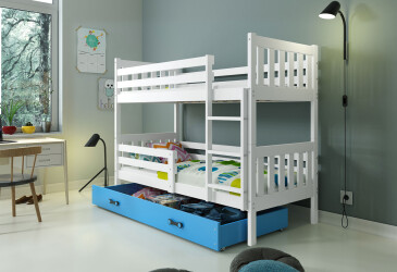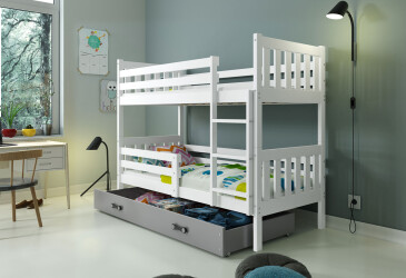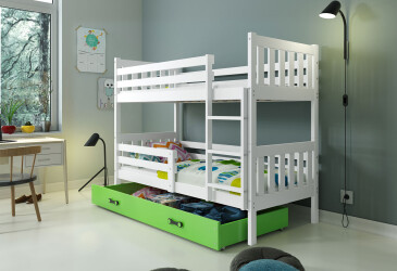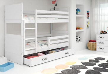- super-cena, 80x190 cm, 2 místa pro spaní, MDF, lakovaná, bílá, s úložným prostorem, s roštem, dřevo, dětský styl.