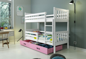 - super-cena, 90x200 cm, 2 místa pro spaní, MDF, lakovaná, bílá, s úložným prostorem, s roštem, dřevo, dětský styl.