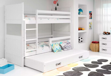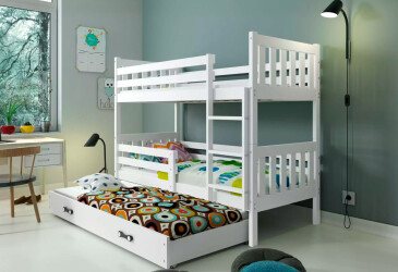 - super-cena, 90x200 cm, 3 místa pro spaní, MDF, lakovaná, bílá, bez úložného prostoru, s roštem, dřevo.