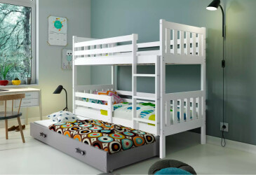 - super-cena, 80x190 cm, 3 místa pro spaní, dřevo, lakovaná, bílá, bez úložného prostoru, s roštem, dřevo.