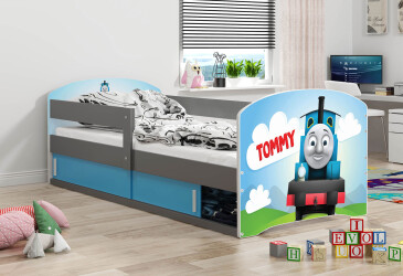 - super-cena, 80x160 cm, 1 místo pro spaní, MDF, lakovaná, grafit / světle modrý, Tommy, s úložným prostorem, s roštem, dřevo, dětský styl.