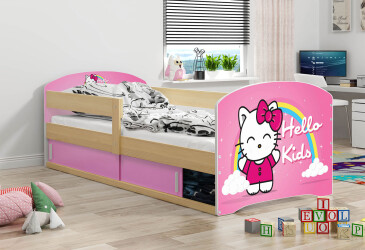 - super-cena, 80x160 cm, 1 místo pro spaní, MDF, lakovaná, borovice / růžový, Hello Kids, s úložným prostorem, s roštem, dřevo, dětský styl.