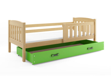 - super-cena, 80x160 cm, 1 místo pro spaní, dřevo, lakovaná, borovice / zelený, s úložným prostorem, s roštem, dřevo, dětský styl.