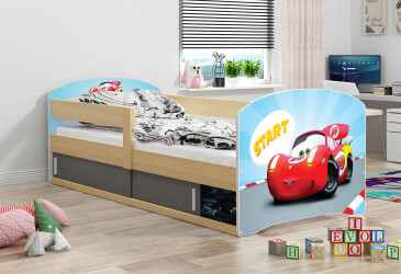 - super-cena, 80x160 cm, 1 místo pro spaní, MDF, lakovaná, grafit / Autíčko , s úložným prostorem, s roštem, dřevo, dětský styl.