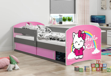 - super-cena, 80x160 cm, 1 místo pro spaní, MDF, lakovaná, grafit / růžový, Hello Kids, s úložným prostorem, s roštem, dřevo, dětský styl.