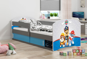 - super-cena, 80x160 cm, 1 místo pro spaní, MDF, lakovaná, grafit / světle modrý,Tlapková patrola, s úložným prostorem, s roštem, dřevo, dětský styl.