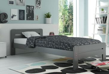- super-cena, 90x200 cm, 1 místo pro spaní, dřevo, lakovaná, grafit, bez úložného prostoru, s roštem, dřevo, dětský styl.