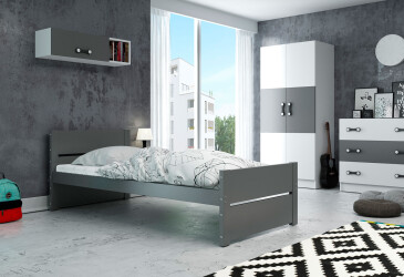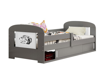 - super-cena, 80x200 cm, 1 místo pro spaní, MDF, lakovaná, grafit / bílý, s úložným prostorem, s roštem, dřevo, dětský styl.