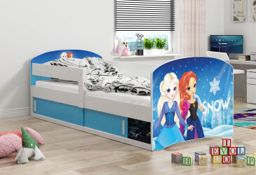 - super-cena, 80x160 cm, 1 místo pro spaní, MDF, lakovaná, bílý / světle modrý, Frozen, s úložným prostorem, s roštem, dřevo, dětský styl.