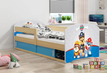 - super-cena, 80x160 cm, 1 místo pro spaní, MDF, lakovaná, borovice / světle modrý, Tlapková patrola, s úložným prostorem, s roštem, dřevo, dětský styl.