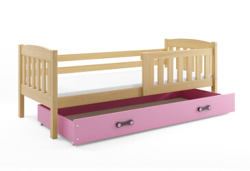 - super-cena, 80x160 cm, 1 místo pro spaní, dřevo, lakovaná, borovice / růžový, s úložným prostorem, s roštem, dřevo, dětský styl.