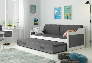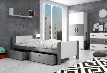 - super-cena, 90x200 cm, 2 místa pro spaní, MDF, lakovaná, bílý / grafit, s úložným prostorem, s roštem, dřevo, dětský styl.