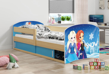 - super-cena, 80x160 cm, 1 místo pro spaní, MDF, lakovaná, borovice / světle modrý, Frozen, s úložným prostorem, s roštem, dřevo, dětský styl.