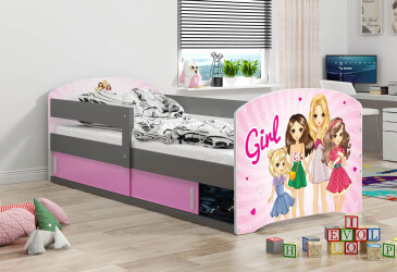- super-cena, 80x160 cm, 1 místo pro spaní, MDF, lakovaná, grafit / růžový, Girls, s úložným prostorem, s roštem, dřevo, dětský styl.
