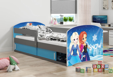 - super-cena, 80x160 cm, 1 místo pro spaní, MDF, lakovaná, grafit / světle modrý, Frozen, s úložným prostorem, s roštem, dřevo, dětský styl.