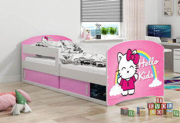 - super-cena, 80x160 cm, 1 místo pro spaní, MDF, lakovaná, bílý / růžový, Hello Kids, s úložným prostorem, s roštem, dřevo, dětský styl.