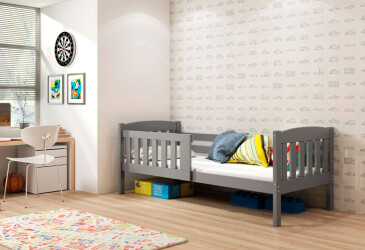 - super-cena, 80x190 cm, 1 místo pro spaní, dřevo, lakovaná, grafit, bez úložného prostoru, s roštem, dřevo, dětský styl.