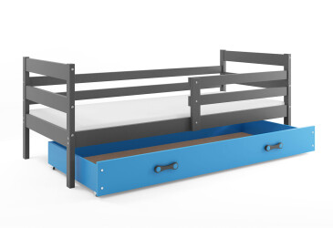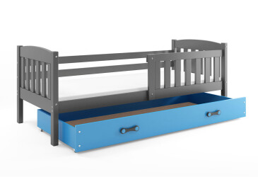 - super-cena, 90x200 cm, 1 místo pro spaní, dřevo, lakovaná, grafit / světle modrý, s úložným prostorem, s roštem, dřevo, dětský styl.