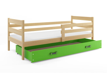 - super-cena, 80x190 cm, 1 místo pro spaní, dřevo, lakovaná, borovice / zelený, s úložným prostorem, s roštem, dřevo, dětský styl.