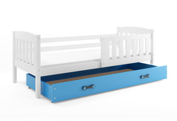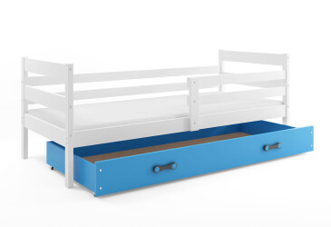 - super-cena, 80x190 cm, 1 místo pro spaní, dřevo, lakovaná, bílý / světle modrý, s úložným prostorem, s roštem, dřevo, dětský styl.