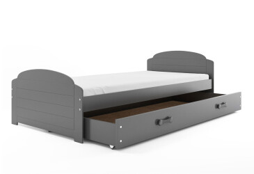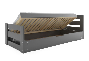 - super-cena, 90x200 cm, 1 místo pro spaní, MDF, lakovaná, grafit, s úložným prostorem, s roštem, dřevo, dětský styl.
