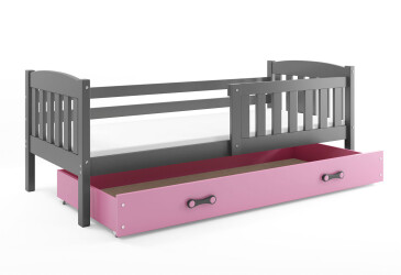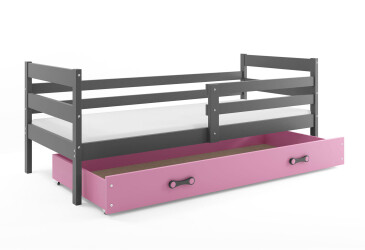 - super-cena, 90x200 cm, 1 místo pro spaní, dřevo, lakovaná, grafit / růžový, s úložným prostorem, s roštem, dřevo, dětský styl.