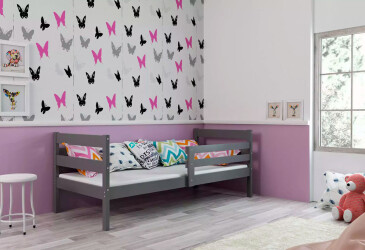 - super-cena, 90x200 cm, 1 místo pro spaní, MDF, lakovaná, grafit, bez úložného prostoru, s roštem, dřevo, dětský styl.