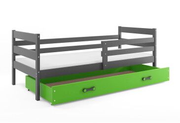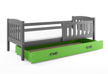 - super-cena, 90x200 cm, 1 místo pro spaní, dřevo, lakovaná, grafit / zelený, s úložným prostorem, s roštem, dřevo, dětský styl.