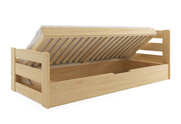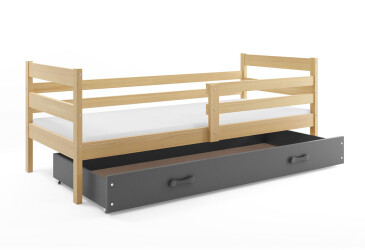 - super-cena, 80x190 cm, 1 místo pro spaní, dřevo, lakovaná, borovice / grafit, s úložným prostorem, s roštem, dřevo, dětský styl.