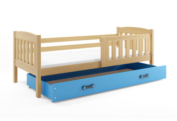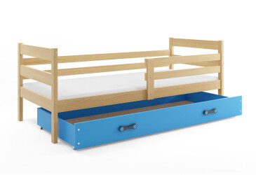 - super-cena, 80x190 cm, 1 místo pro spaní, dřevo, lakovaná, borovice / světle modrý, s úložným prostorem, s roštem, dřevo, dětský styl.