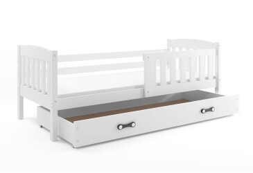 - super-cena, 80x190 cm, 1 místo pro spaní, dřevo, lakovaná, bílá, s úložným prostorem, s roštem, dřevo, dětský styl.