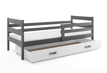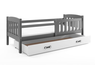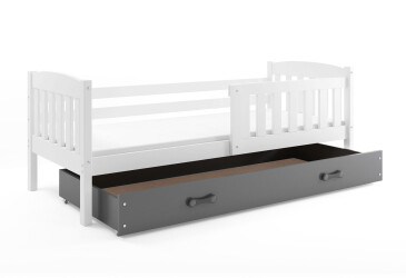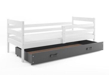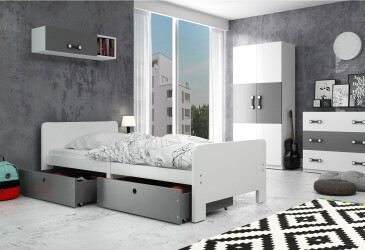 - super-cena, 80x200 cm, 1 místo pro spaní, MDF, lakovaná, bílý / grafit, s úložným prostorem, s roštem, dřevo, dětský styl.