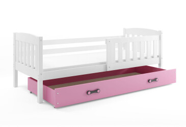 - super-cena, 80x190 cm, 1 místo pro spaní, dřevo, lakovaná, bílý / růžový , s úložným prostorem, s roštem, dřevo, dětský styl.