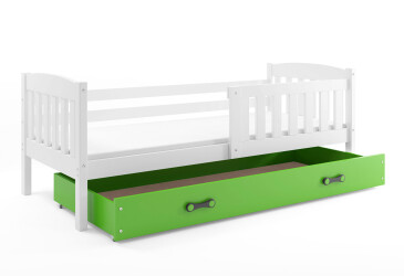 - super-cena, 80x190 cm, 1 místo pro spaní, dřevo, lakovaná, bílý / zelený, s úložným prostorem, s roštem, dřevo, dětský styl.