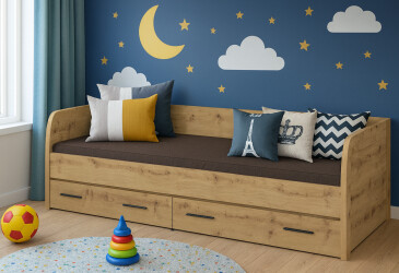 - speciální nabídka, skladem, 90x200 cm, 1 místo pro spaní, dřevotříska, laminovaná, dub artisan, s úložným prostorem, s roštem, dřevotříska, skandinávský styl.