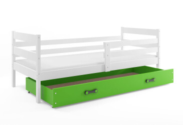 - super-cena, 80x190 cm, 1 místo pro spaní, dřevo, lakovaná, bílý / zelený, s úložným prostorem, s roštem, dřevo, dětský styl.