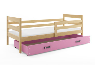 - super-cena, 80x190 cm, 1 místo pro spaní, dřevo, lakovaná, borovice / růžový, s úložným prostorem, s roštem, dřevo, dětský styl.