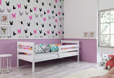 - super-cena, 80x190 cm, 1 místo pro spaní, dřevo, lakovaná, bílá, bez úložného prostoru, s roštem, dřevo, dětský styl.