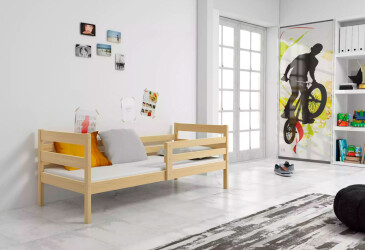 - super-cena, 80x190 cm, 1 místo pro spaní, dřevo, lakovaná, borovice, bez úložného prostoru, s roštem, dřevo, dětský styl.