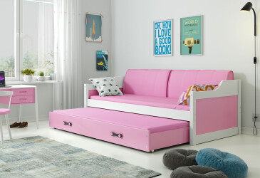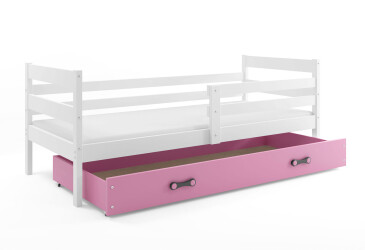 - super-cena, 80x190 cm, 1 místo pro spaní, dřevo, lakovaná, bílý / růžový , s úložným prostorem, s roštem, dřevo, dětský styl.