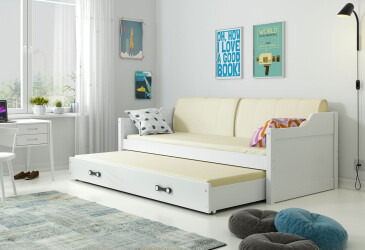 - super-cena, 80x190 cm, 1 místo pro spaní, dřevo, lakovaná, bílá, s úložným prostorem, s roštem, dřevo, dětský styl.