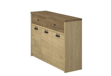 - novinka, dřevotříska, laminovaná, se zásuvkami, dub cremona / dub lefkas, kuličková vedení plného výsuvu, 3 zásuvky, dřevotříska, moderní styl.