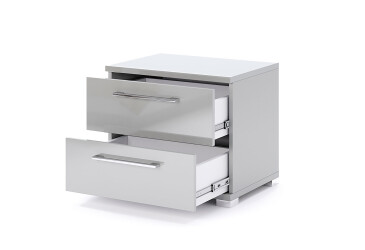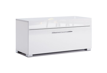 - super-cena, dřevotříska, lesklá, laminovaná, bílý lesk, volně stojící, kuličková vedení plného výsuvu, se zásuvkami, dřevotříska, moderní.
