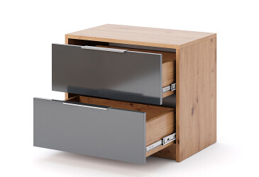 - super-cena, skladem, dřevotříska + MDF, laminovaná, patinovaná, dub navarra, kuličková vedení plného výsuvu, uzavřené, dřevotříska, moderní styl.