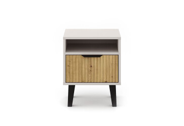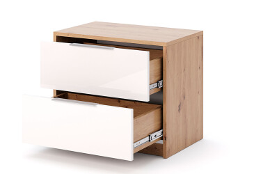 - super-cena, dřevotříska, lesklá, laminovaná, dub kraft / bílý, volně stojící, kuličková vedení plného výsuvu, s police a zásuvky, dřevotříska, moderní styl.