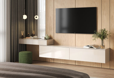 - telescopické plné výsuvné vodící lišty, super-cena, dřevotříska, lesklá, laminovaná, kašmír, závěsný, kuličková vedení plného výsuvu, se zásuvkami, dřevotříska, moderní.