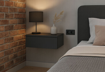- super-cena, dřevotříska, lesklá, laminovaná, antracit / grafit, volně stojící, kuličková vedení plného výsuvu, se zásuvkami, dřevotříska, moderní.