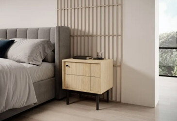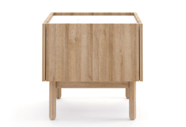 - super-cena, frézovaný DSP, laminovaná, dub linea, volně stojící, kuličková vedení s dotahovačem, s dvířky, dřevotříska, moderní styl.