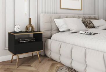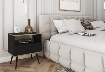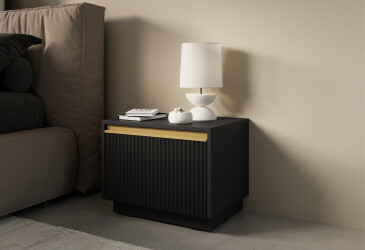 - super-cena, MDF, matná, černý, zlatý / černý, volně stojící, kuličková vedení plného výsuvu, s police a zásuvky, dřevotříska, skandinávský styl.